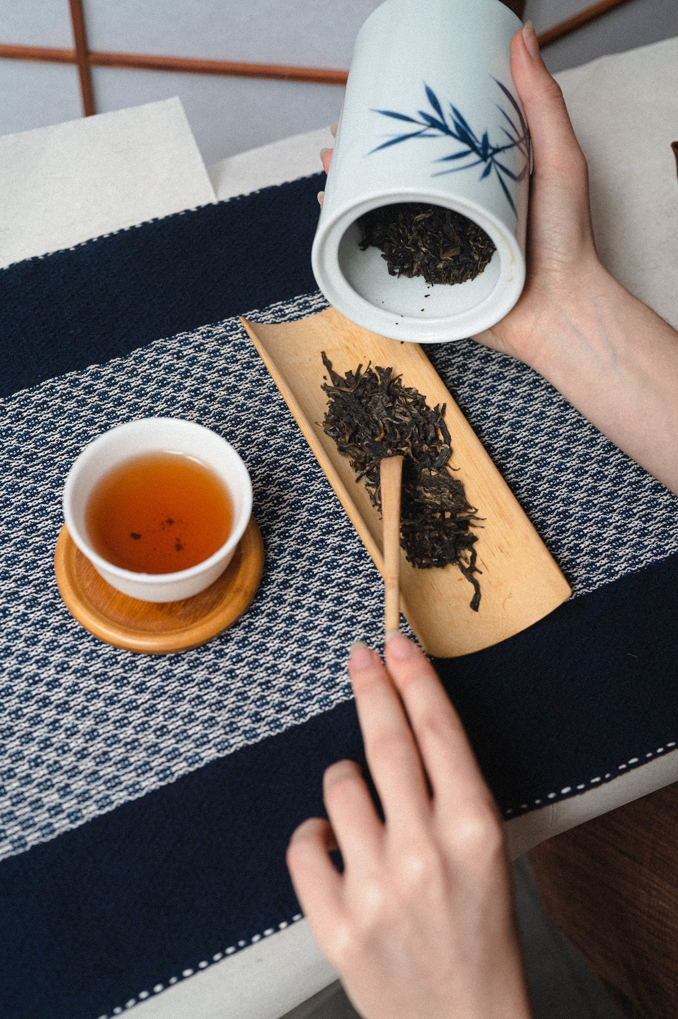 Nous avons conçu ces pièces textiles pour accompagner tous vos rituels. Elles constituent le chabu parfait pour votre rituel du thé. Vous pouvez également les utiliser pour composer votre autel ou comme tapis d'oracle. Ces sets sont infusés du pouvoir de guérison des plantes médicinales utilisées pour teindre les tissus, ainsi que de l'amour inconditionnel des femmes Dong pour leur artisanat. L'énergie du tissu possède donc des vertus de guérison.
